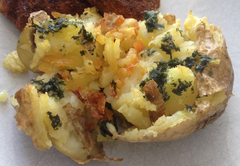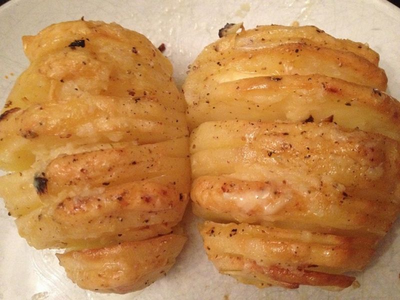 - De gekookte aardappels even in de oven met boter en kruiden.