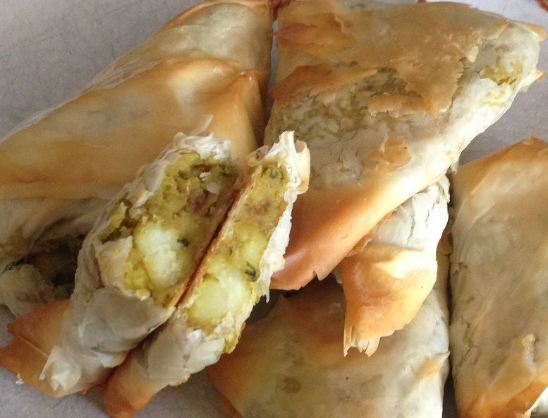 Filodeeg driehoekje met aardappels en specerijen uit India